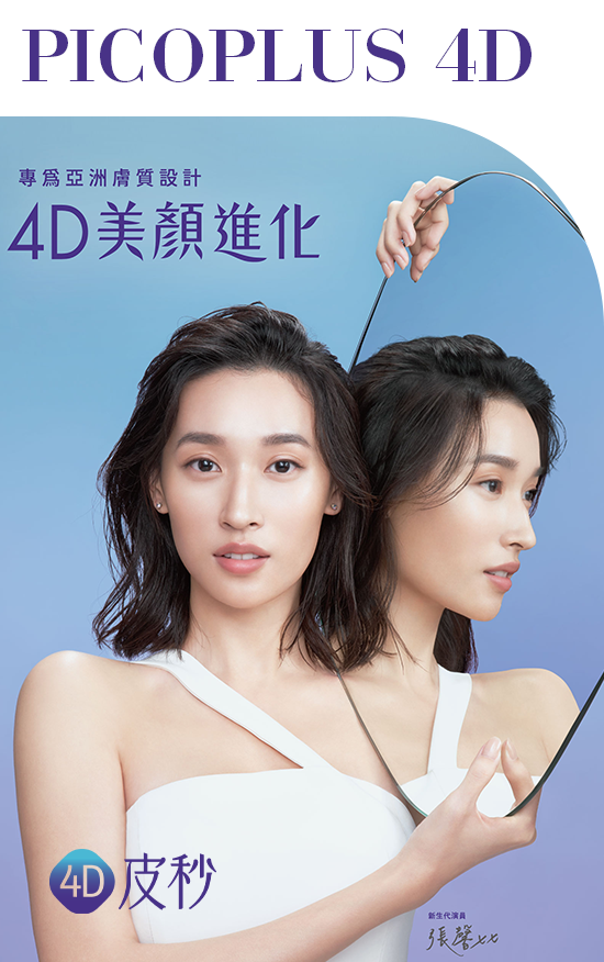 4D皮秒擁有4種波長〈532/595/660/1064nm〉,針對不同深淺層肌膚提供客製化治療。