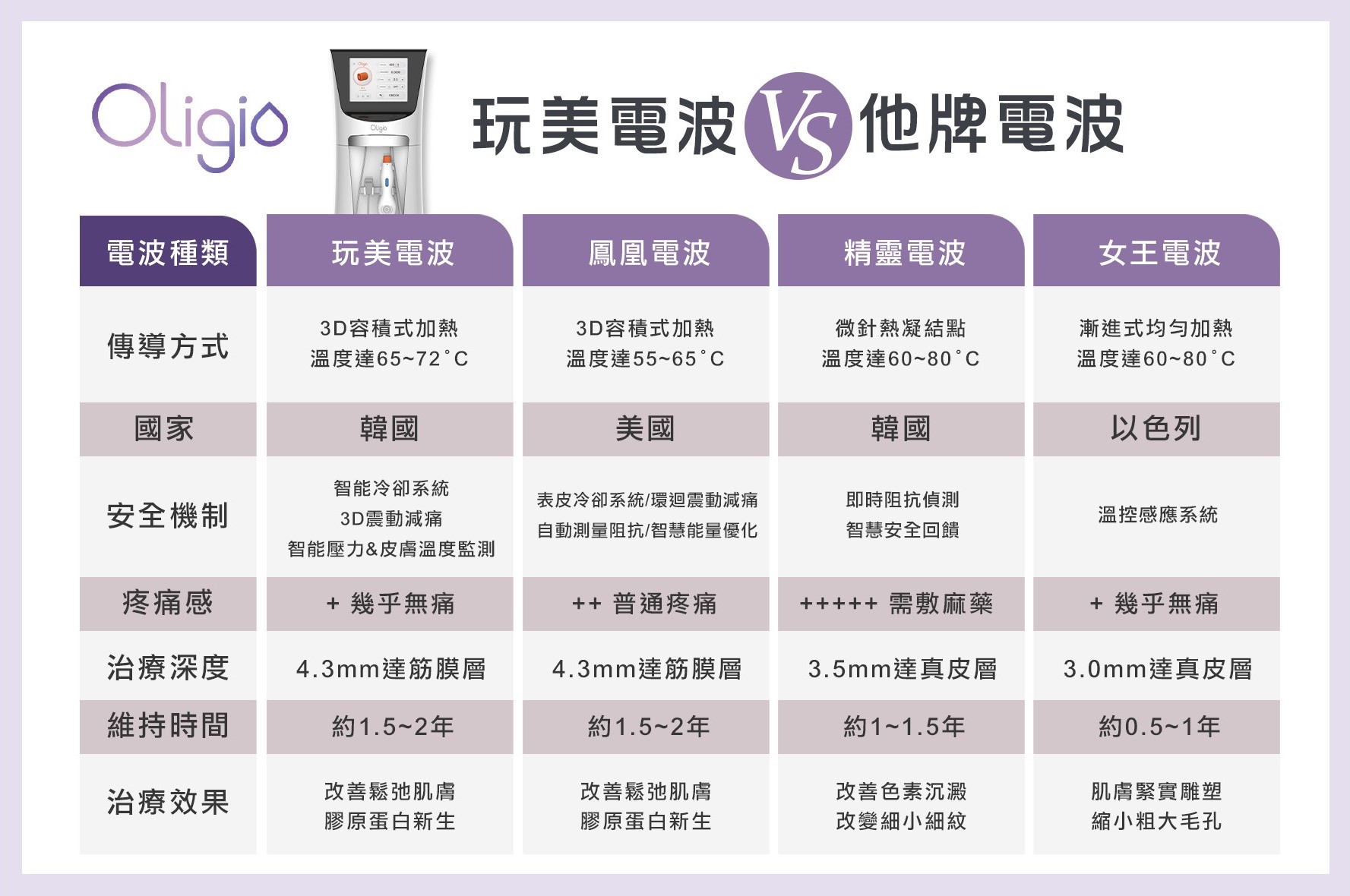 輕醫美保養的觀念越來越盛行,拉提緊緻的電波開始風靡,各式類型的電波機台不斷的出現,而玩美電波Oligio其實早已風靡全韓國,強調低痛感、高效率,是目前市面上新型的非侵人式電波治療系統,利用容積式加熱模式將能量從表皮傳導至筋膜層,由外而內的加熱下促進產生膠原蛋白,以達到緊緻除皺的效果,連韓劇女神金素妍也抗拒不了玩美電波Oligio的顯著效果,如今這股韓流也席捲台灣,是許多明星維持肌膚緊緻和小臉的保養祕訣,而其發數不受限的特色,可是小資女高CP值的新選擇!