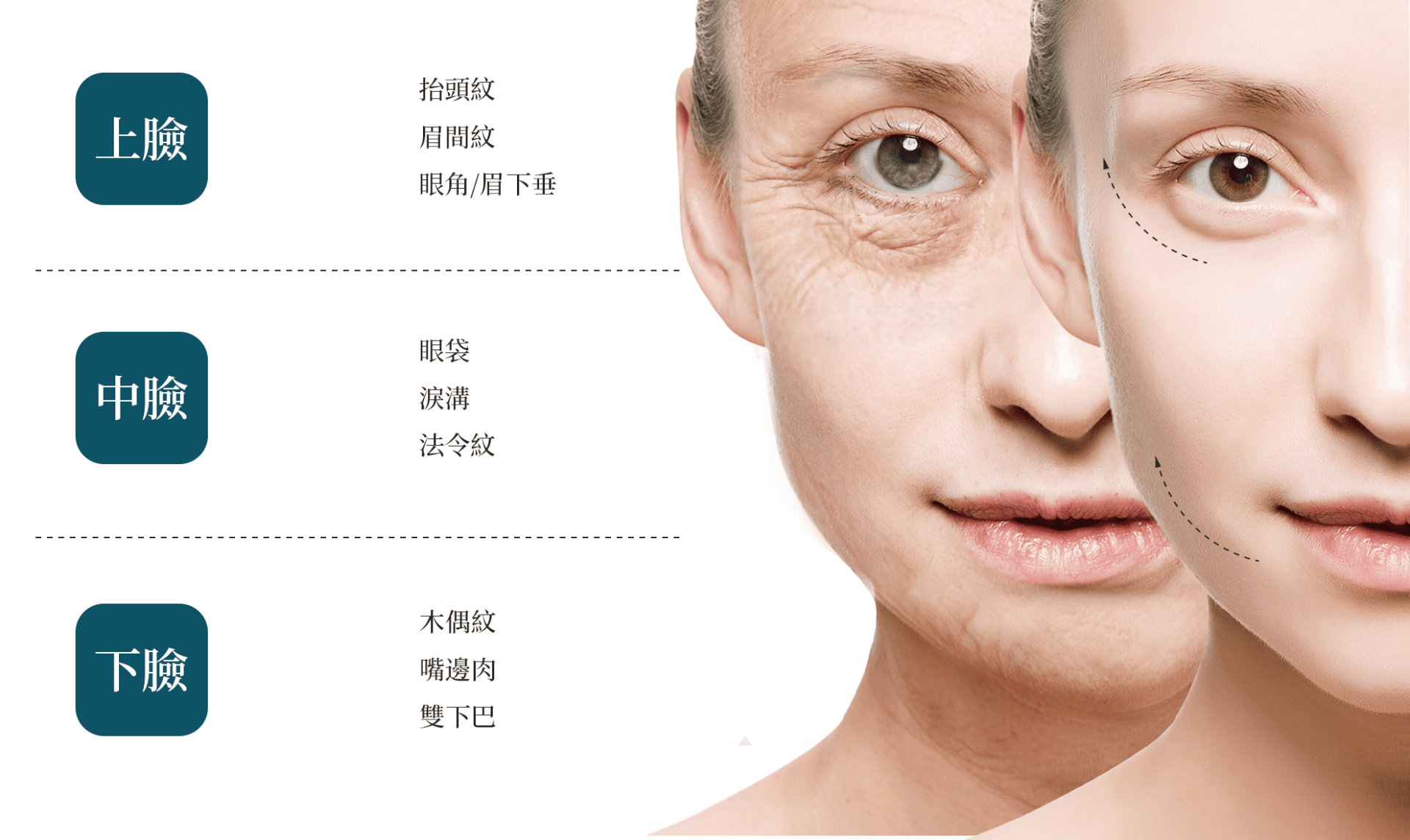 隨著年齡增長,你是否也有這些煩惱?法令越來越深、嘴邊肉鬆垮、雙下巴、拍照總覺得臉變大,臉部超齡感出賣了你,實在讓人想打破鏡子!這些其實不是老,而是中臉支撐力流失的開始。很多人面對初老跡象時,第一時間想到的可能是玻尿酸填補、電音波緊膚、甚至用醫美保養來維持青春,但當法令紋越來越明顯、嘴邊肉往下垂、顴骨輪廓不再清晰時,這些表層療程往往難以真正對抗「重力」的拉扯。