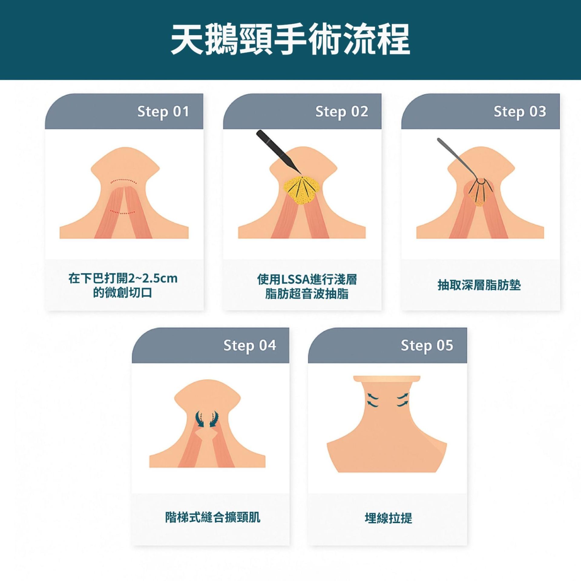 有時候明明做了下巴雕塑、也瘦了,卻還是覺得臉不夠精緻、輪廓不夠清楚,問題其實出在脖子,當下巴與脖子間的界線不明確,雙下巴、頸部鬆弛或脂肪堆積,很容易讓整個臉部顯得無神、下垂又顯老。隨著年齡增長、脂肪堆積或天生脂肪分布差異,下顎與頸部容易出現模糊的輪廓或雙下巴、脖子粗短等視覺印象,天鵝頸手術就是專門針對這個從下巴底部延伸到鎖骨的區域,解決頸部脂肪堆積、雙下巴、鬆弛與頸紋等問題。