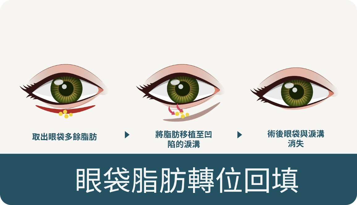 眼下整合性手術方式,能在移除或調整眼袋脂肪的同時,將部分脂肪回填至淚溝或凹陷處,使眼下曲線更平順自然,改善「泡泡眼」與「黑眼圈感」。