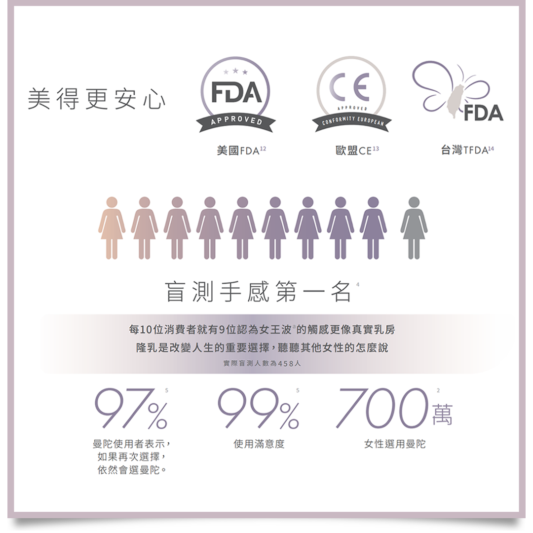 二代矽膠:改良後更柔軟貼膚、降低移位風險,外觀更自然。