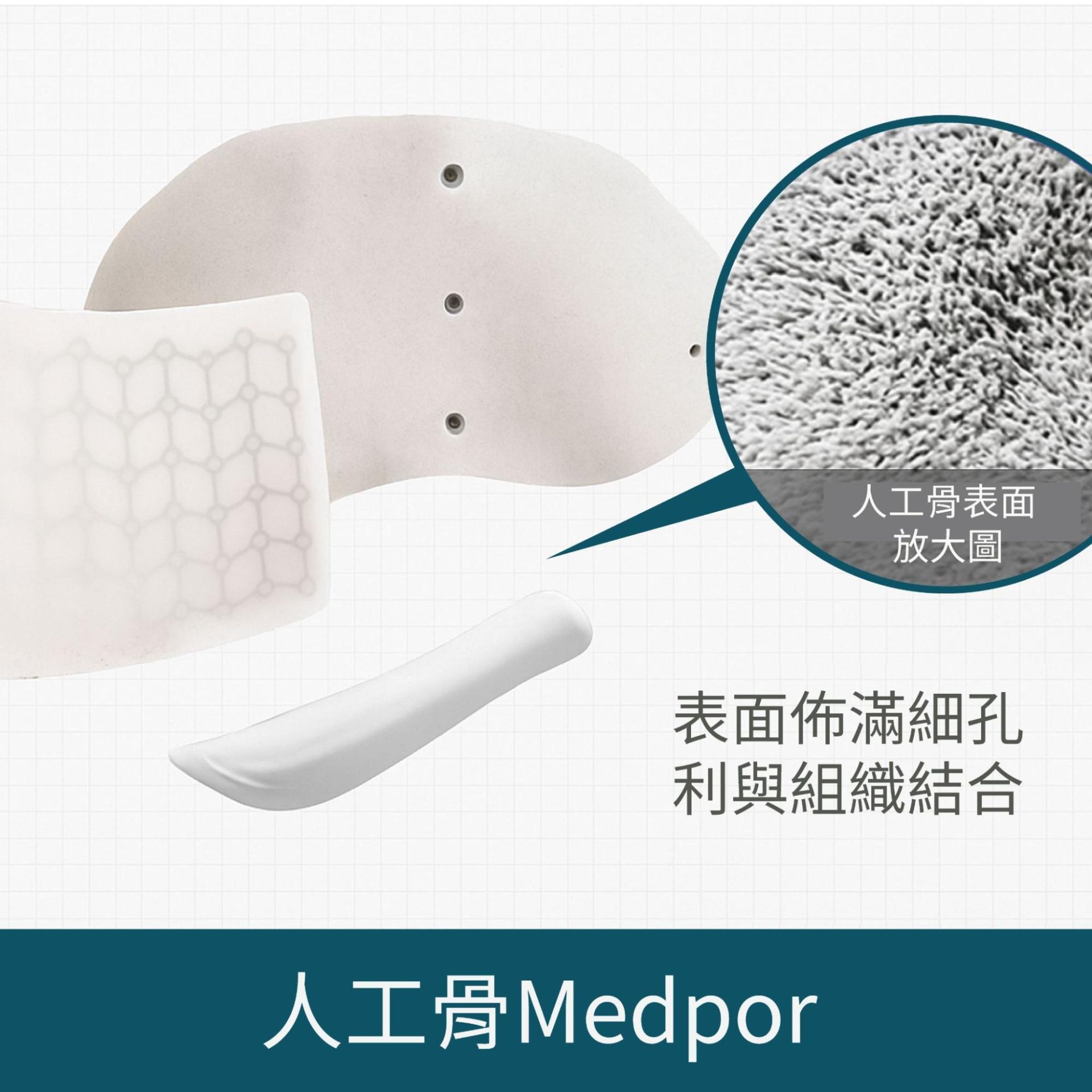 高密度聚乙烯材質,表面具微孔,組織可長入、降低莢膜與移位;支撐性強、易雕刻塑形,較利於貼合鼻型。