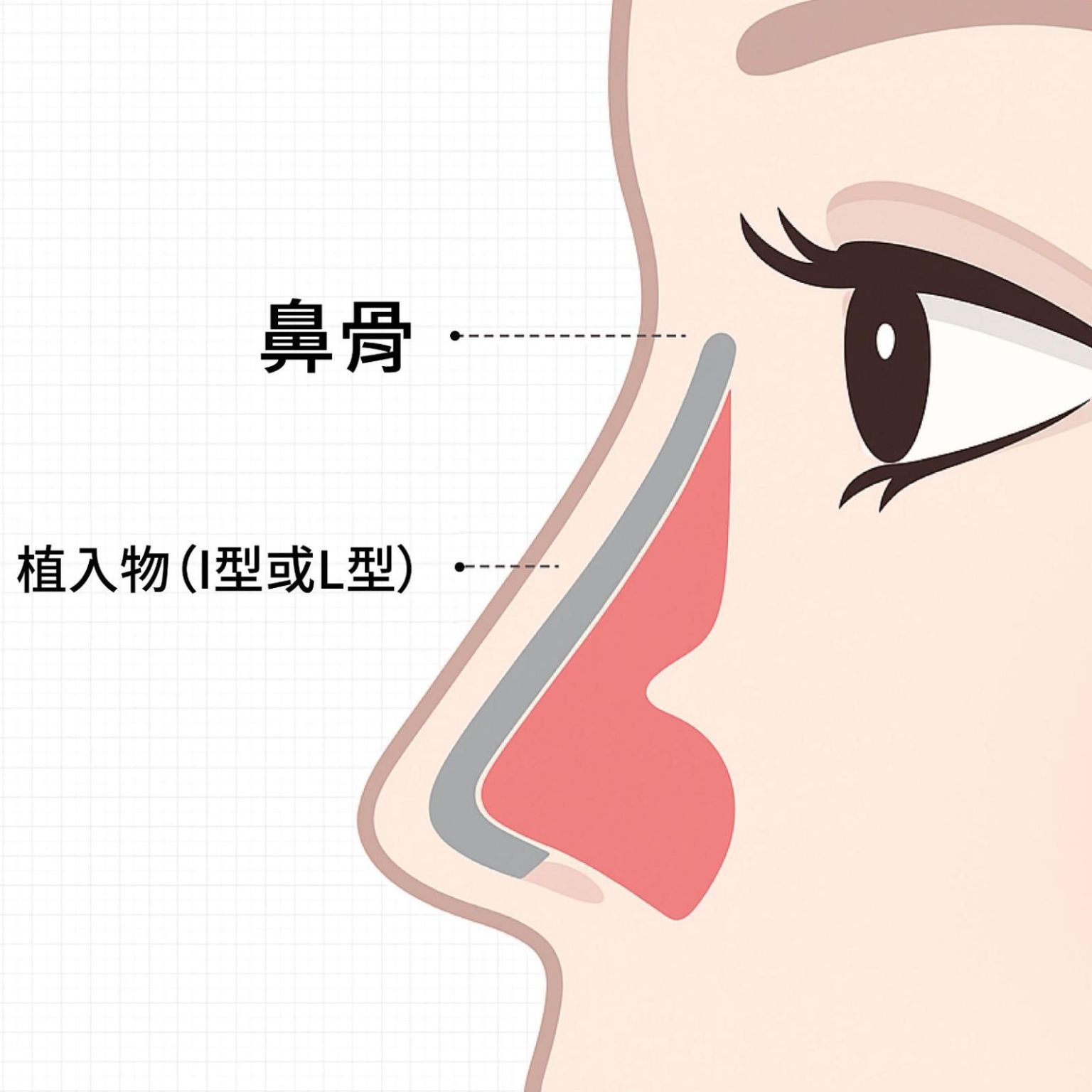 一段式隆鼻將 I 型或 L 型鼻模置入鼻腔內,主要增加山根、鼻樑高度。屬於傳統隆鼻手術未經客製化雕刻,對鼻頭形狀或長度、角度變化有限;L 型鼻模對鼻頭壓力較大,少數人可能出現鼻頭皮膚變薄、鼻模穿出、莢膜攣縮等風險。